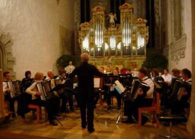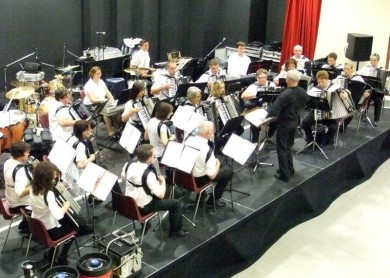 Musikalisch hatte der Abend natürlich auch einiges zu bieten. Unter der Leitung von Franc Zibert trumpfte das Orchester mal mit gewaltigen Klängen aus „Lord of the Dance“ von Ronan Padraig Hardiman oder mal mit zarten Tönen aus der „Irischen Suite“ von Matyas Seiber und vielem mehr. Der Verein bewies, dass er sich stets auch musikalisch weiter entwickelte im Laufe der letzten 50 Jahre. So spannt sich der musikalische Bogen heute von der Klassik, über Originalkompositionen für Akkordeon, bis hin zur modernen Unterhaltungsmusik.