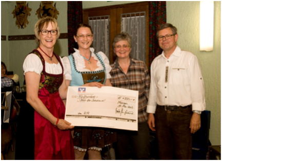 Der symbolische Scheck der erspielten Spendensumme des zuvor erwähnten Benefizkonzerts wurde im Rahmen des 60. Geburtstags von Rolf Steinhilber im Schützenhaus in Mössingen überreicht.