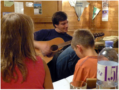 Die Spaghetti Bolognese zum Abendessen hatten sich die fleißigen Wanderer also verdient. Der eine oder andere musste sich dennoch etwas erholen um beim geselligen Teil des Abends wieder fit genug zu sein. Heute packte Christian seine Gitarre aus und man sang ein Lied nach dem anderen, ob mit oder ohne Spülstöpsel als Mikrofon, mit einer Energie als wäre die heutige Bergtour nur ein kleiner Spaziergang gewesen.