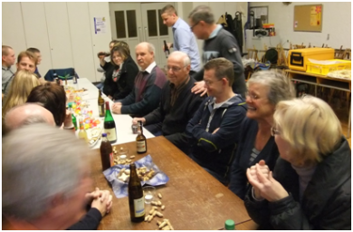 In diesem Jahr hatten wir Besuch bei unserem Fest: Eine kleine Abordnung aus Frankreich, die mit dem Fahrrad angereist war, nahm an unserem Fest teil. Somit kamen wir in den Genuss, die Rede unserer Vorstandschaft, sowohl in deutsch als auch auf französisch zu hören. Nachdem der französische Bürgermeister ein paar Worte an uns gerichtet hatte, wurden das Fleisch und die Würstchen auf den Grill gelegt. Bei leckerem Essen und guter Gesellschaft ließ man das Jahr ausklingen.
