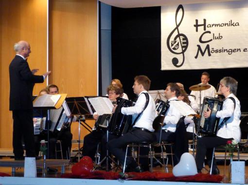 Das Publikum spendete im Anschluss an das Konzert reichlich, wie in jedem Jahr auch diesmal für einen guten Zweck. In diesem Jahr kommen die Spenden dem „Freundeskreis Asyl“ zugute. Der Verein kümmert sich seit 2003 um Flüchtlinge in Mössingen. Ein kurzer Vortrag von Frau Sarai Kandal vom Freundeskreis Asyl macht deutlich: hauptsächlich sollen Sprachkurse unterstützt werden. Der Freundeskreis hilft bei der Vermittlung, auch von Wohnungen, und bietet die Möglichkeit der Begegnung zwischen Asylsuchenden und Mössinger Bürgern. Der Harmonika Club freut sich, neben der Freude am Musizieren auch bei diesem sozialen Projekt einen Beitrag leisten zu können.